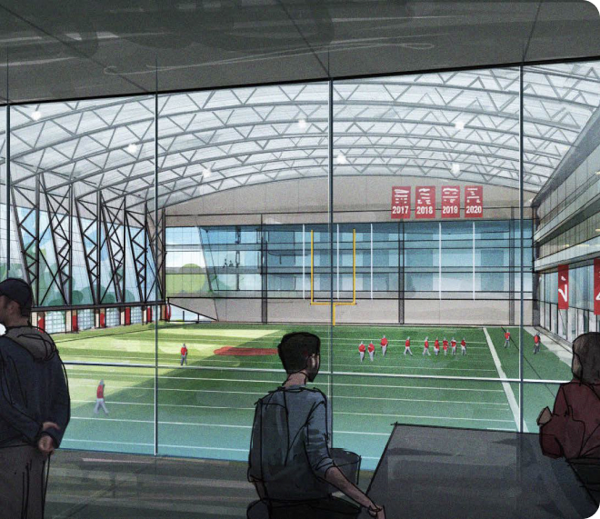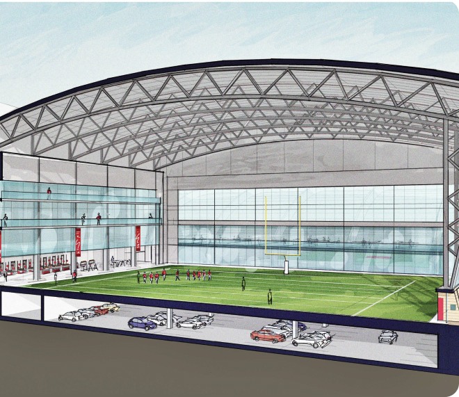 two new initiatives: building a new football indoor practice facility and supporting the efforts of The Varsity